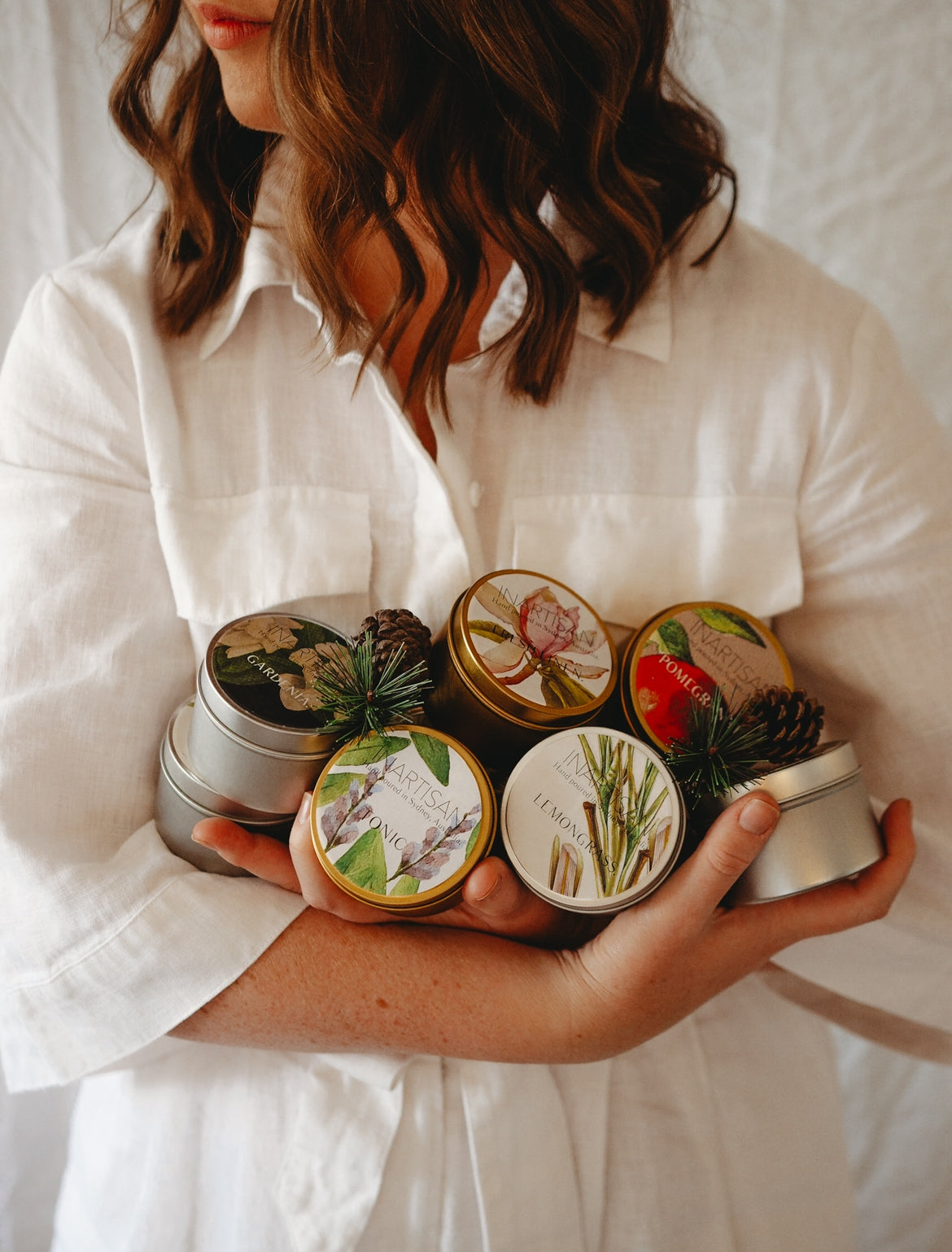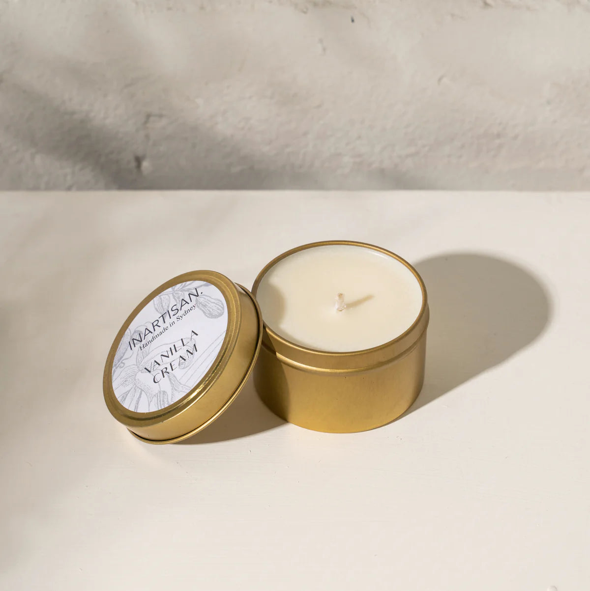 Hand poured Soy Candles made in Australia using only the finest quality natural, sustainable and non-GM soy waxes. Natural Wicks. Available in brass and silver.