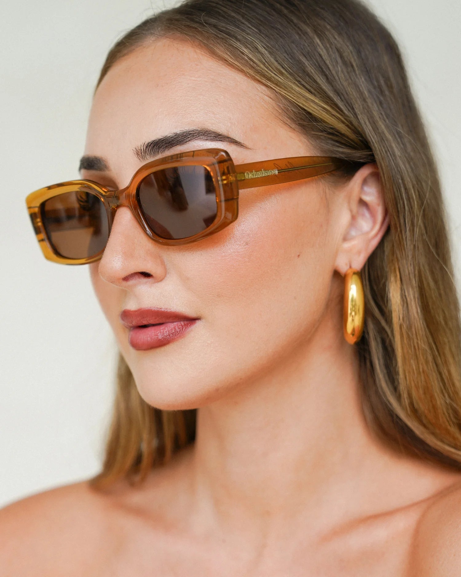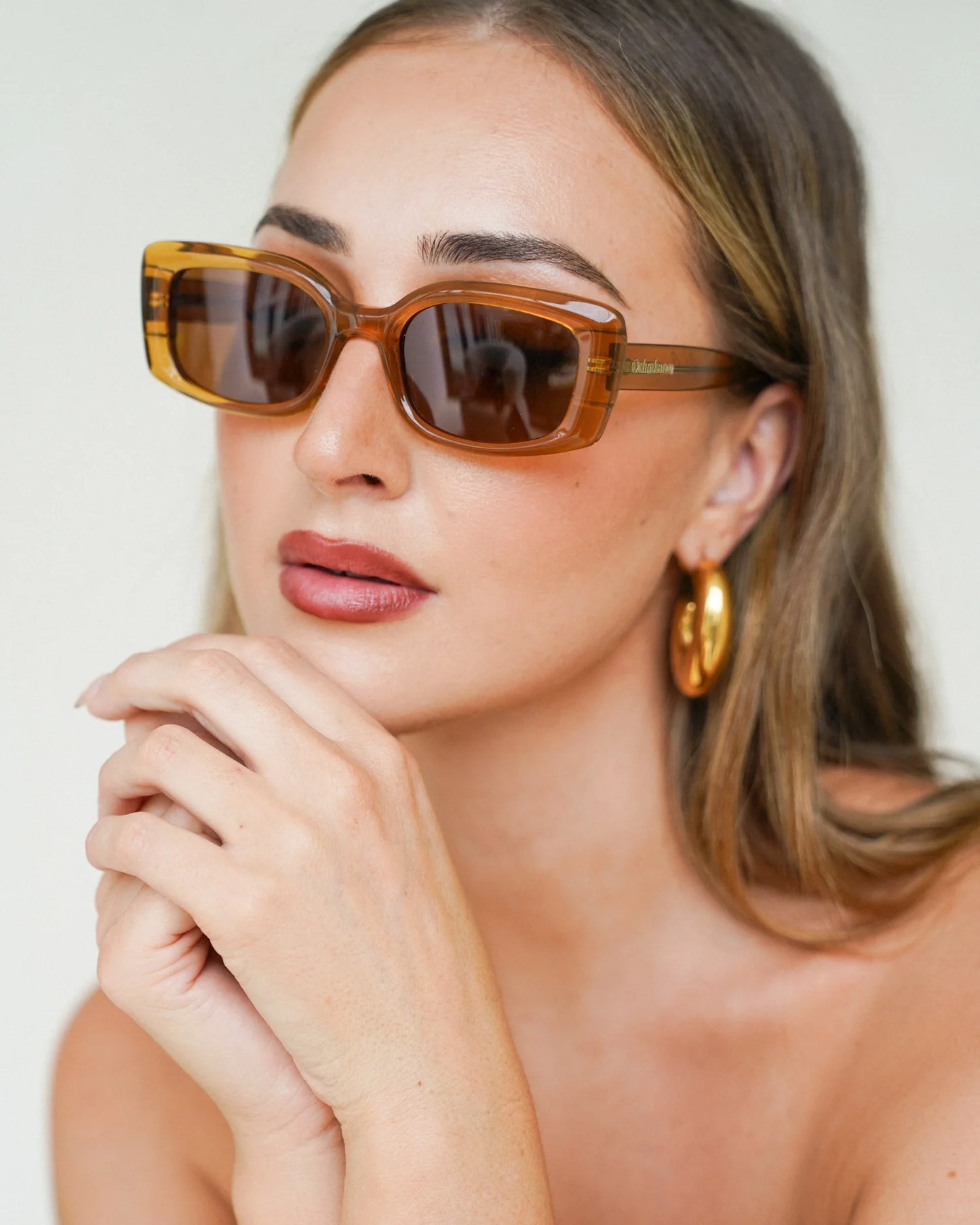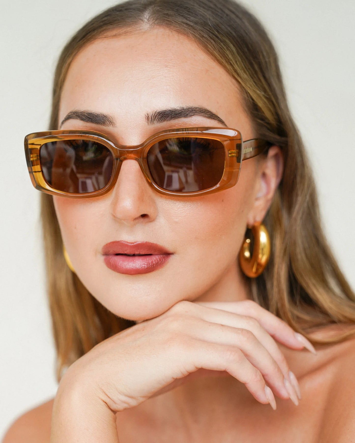 The Ada in Clay Brown is a sculptural rectangular frame crafted in earthy-toned acetate that feels both warm and understated. Its clean lines and low-profile silhouette offer a contemporary edge while remaining effortlessly wearable.