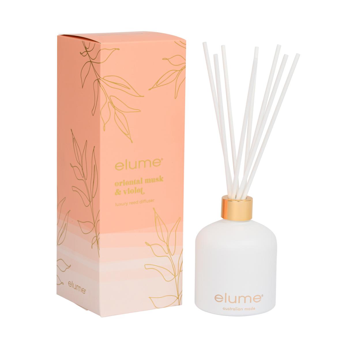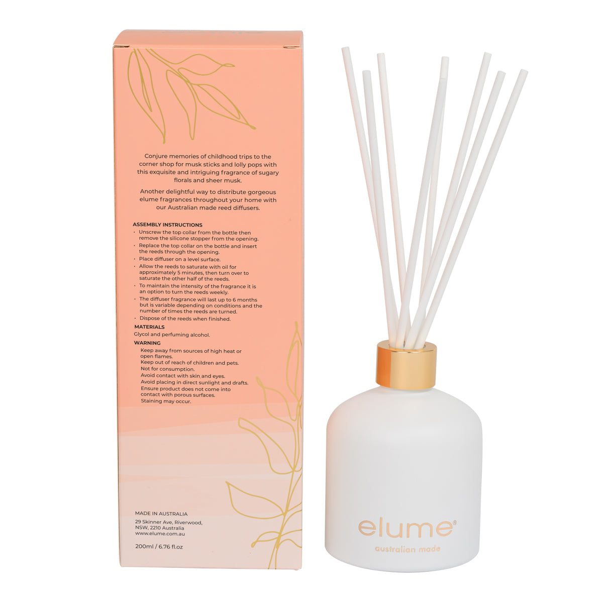 Elume’s Luxury Reed Diffusers are a pure and natural way to disperse fragrant oils throughout your home. By using fibre sticks, the fragrance is absorbed and distributed most effectively without having to rotate the reeds. Pair with the matching luxury soy candle. Recommended for small or medium sized rooms and lasts up to 6 months. 200 ml