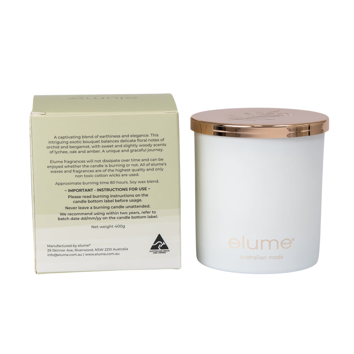 Elume’s Australian made Luxury Soy Candles bring a touch of elegance and distinction to any room. Meticulously made with a premium soy wax blend and exquisite scents, these hand-poured candles, crafted in Australia, offer up to 80 hours of enjoyment. For those seeking a more luxurious and refined candle experience, you’ll find this selection a pleasure to discover. Ideal for gifts or enhancing your own home decor with sophistication. 400g.